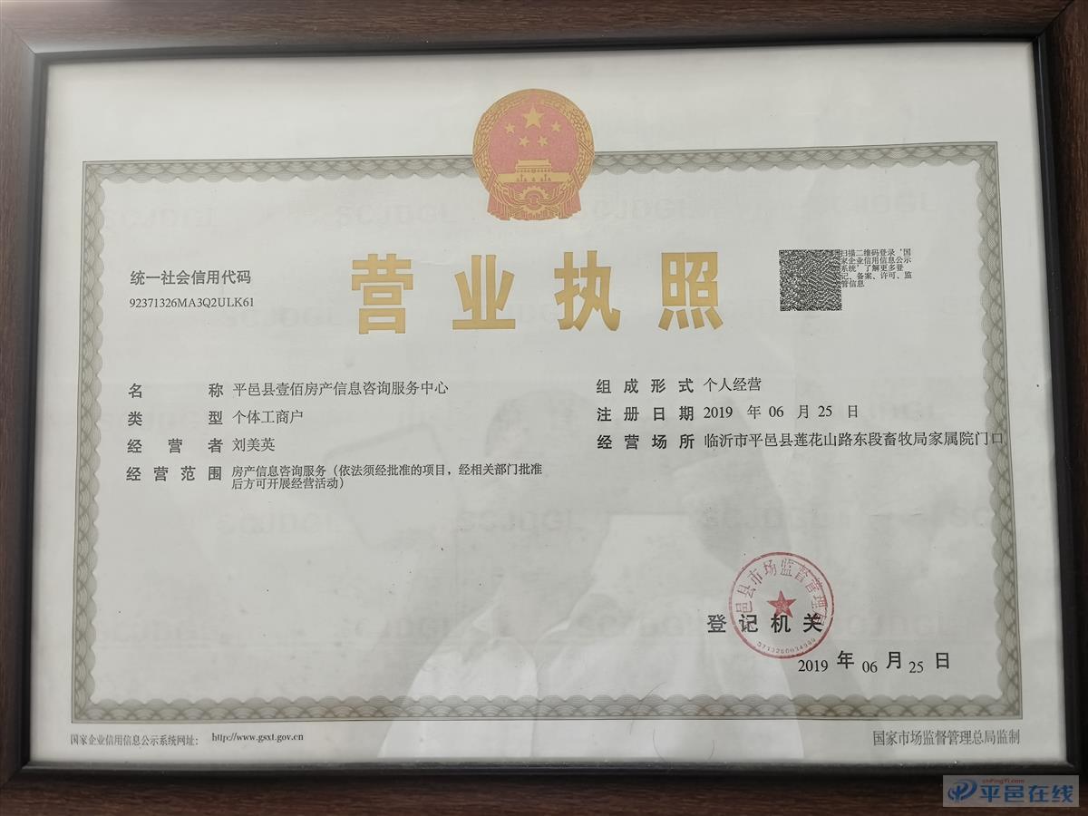 平邑县壹佰房产信息咨询服务中心